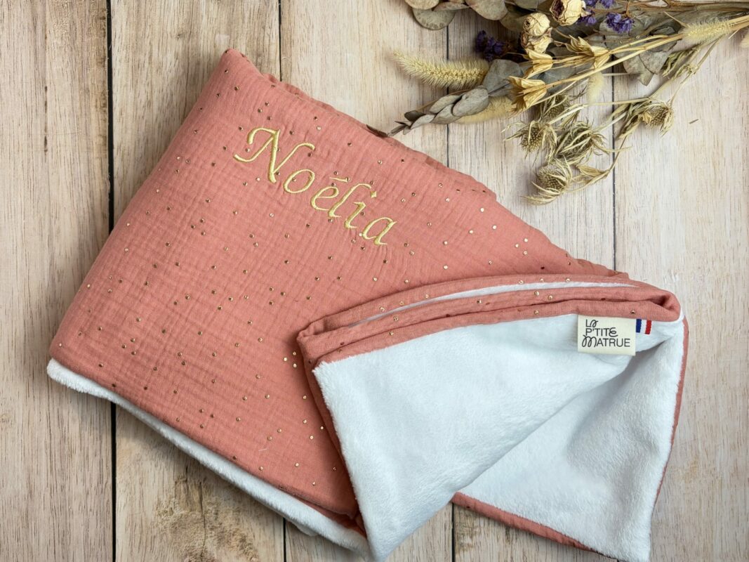Fabriquée avec soin, cette couverture allie praticité et élégance. Utile de la naissance jusqu’à 4 ans environ ( selon la taille de chacun). Le petit détail qui fait la différence, c’est la broderie. Vous permettant d’avoir une création sur-mesure et personnalisée.